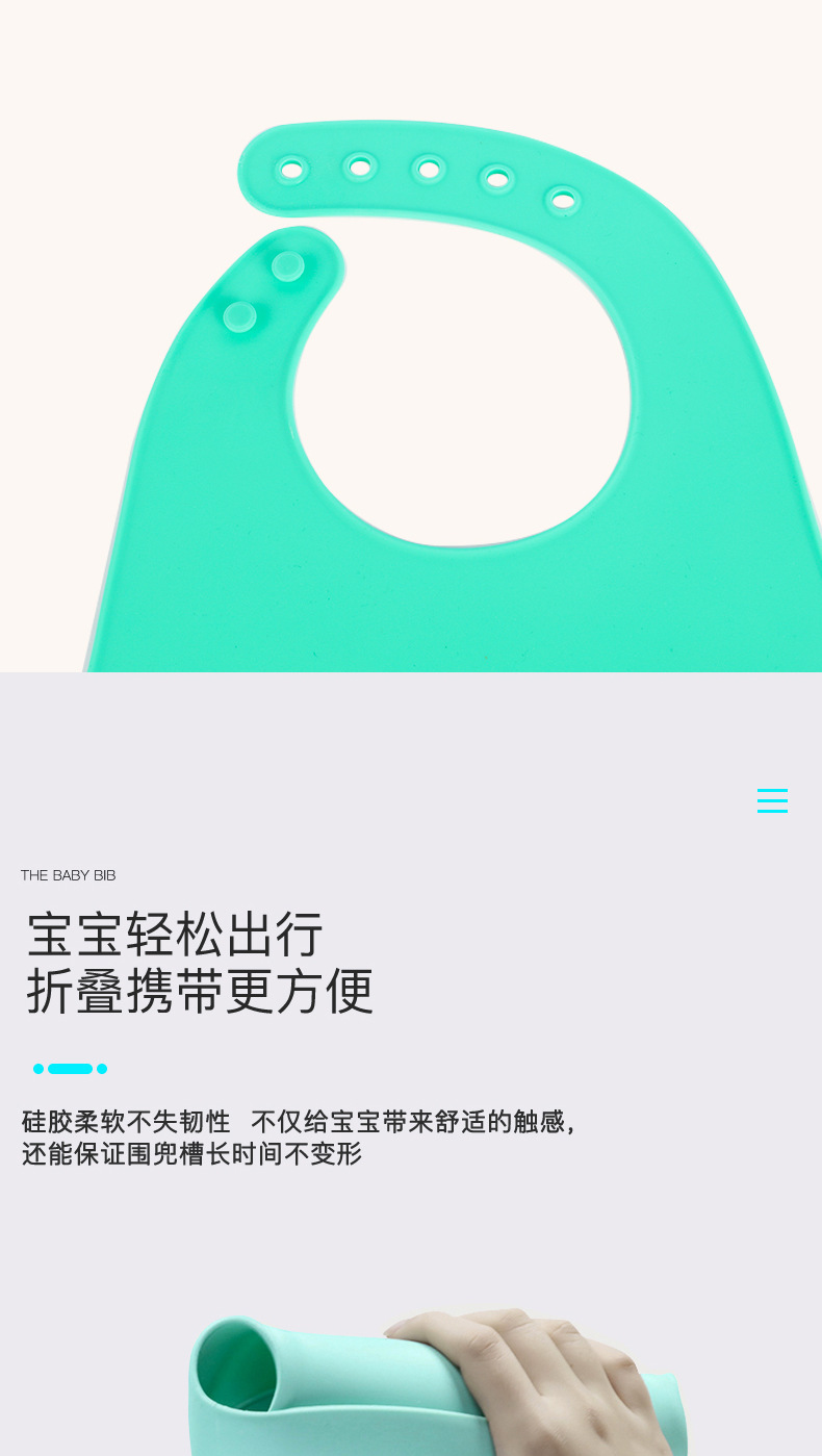 您的位置:首頁(yè) > 產(chǎn)品中心 > 硅膠嬰童用品 > 口水兜 > 兒童硅膠口水兜定制,寶寶吃飯輔食神器硅膠圍兜圍嘴代加工