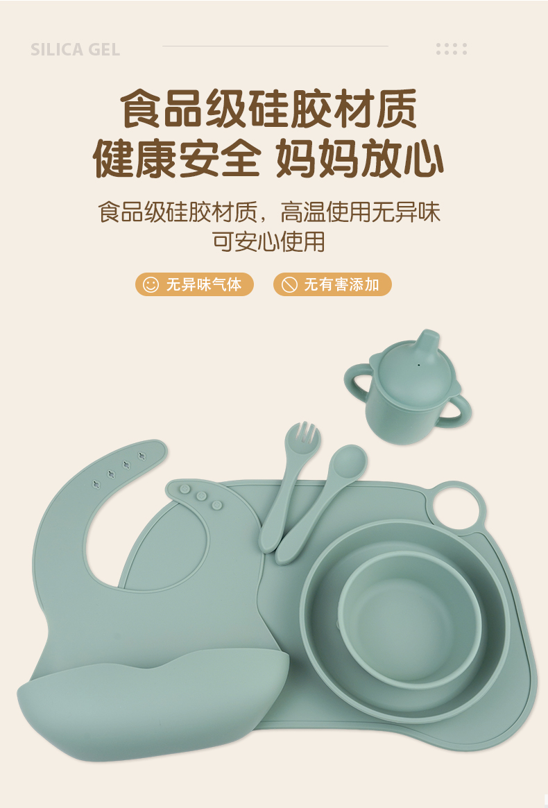 您的位置:首頁 > 產(chǎn)品中心 > 硅膠嬰童用品 > 硅膠圍兜吸盤碗大勺子可水煮食品級(jí)母嬰硅膠喂養(yǎng)餐具套裝